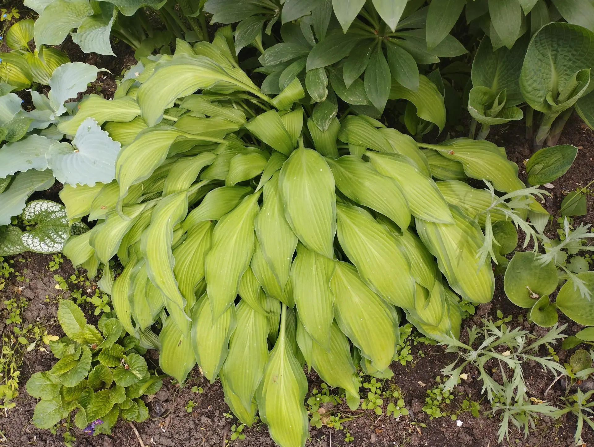 M-S, лист длинный, ланцетный, волнистый, появляется голубовато- зеленым, со временем становятся золотистыми с узкой голубовато- зеленой окантовкой