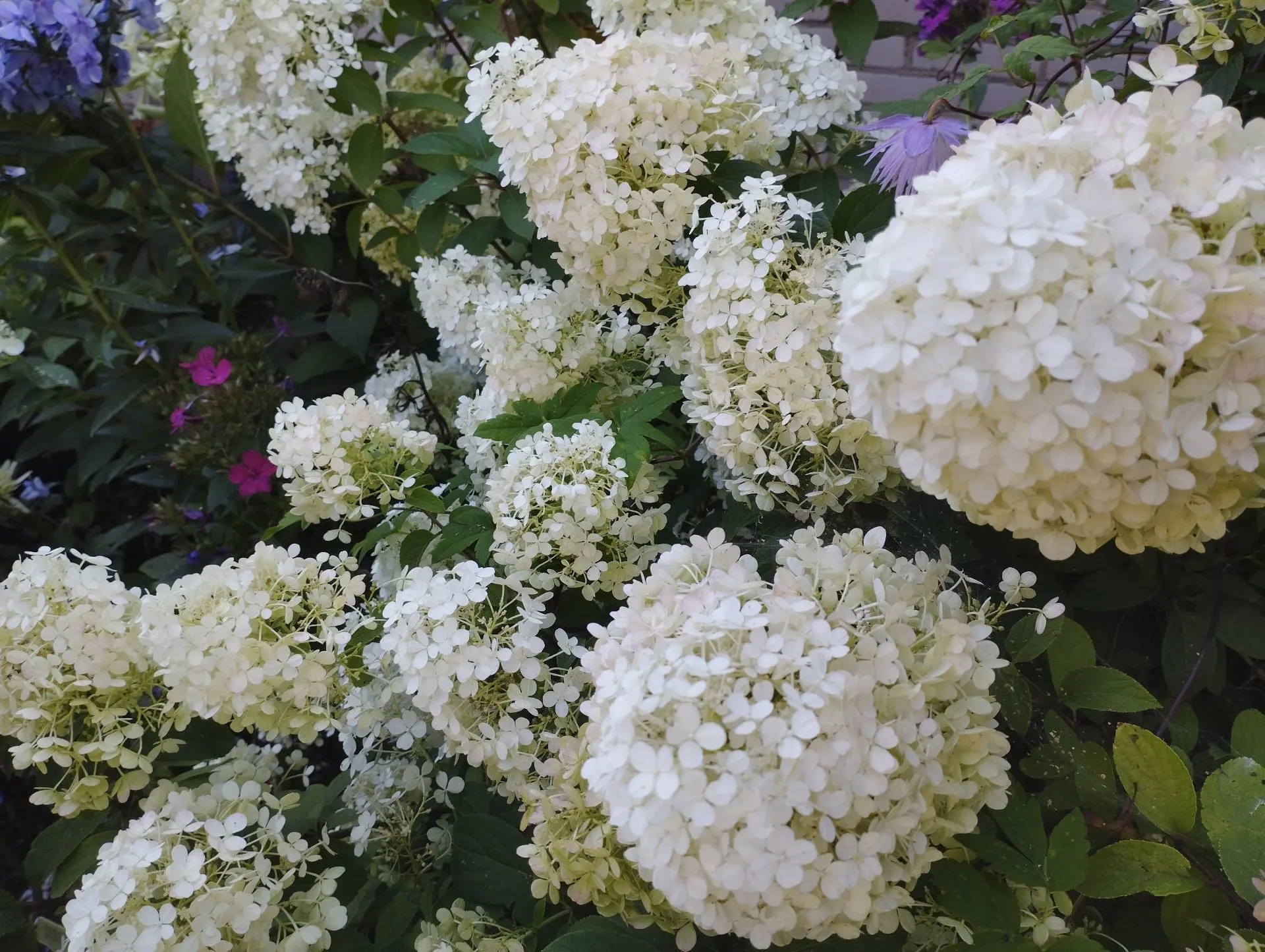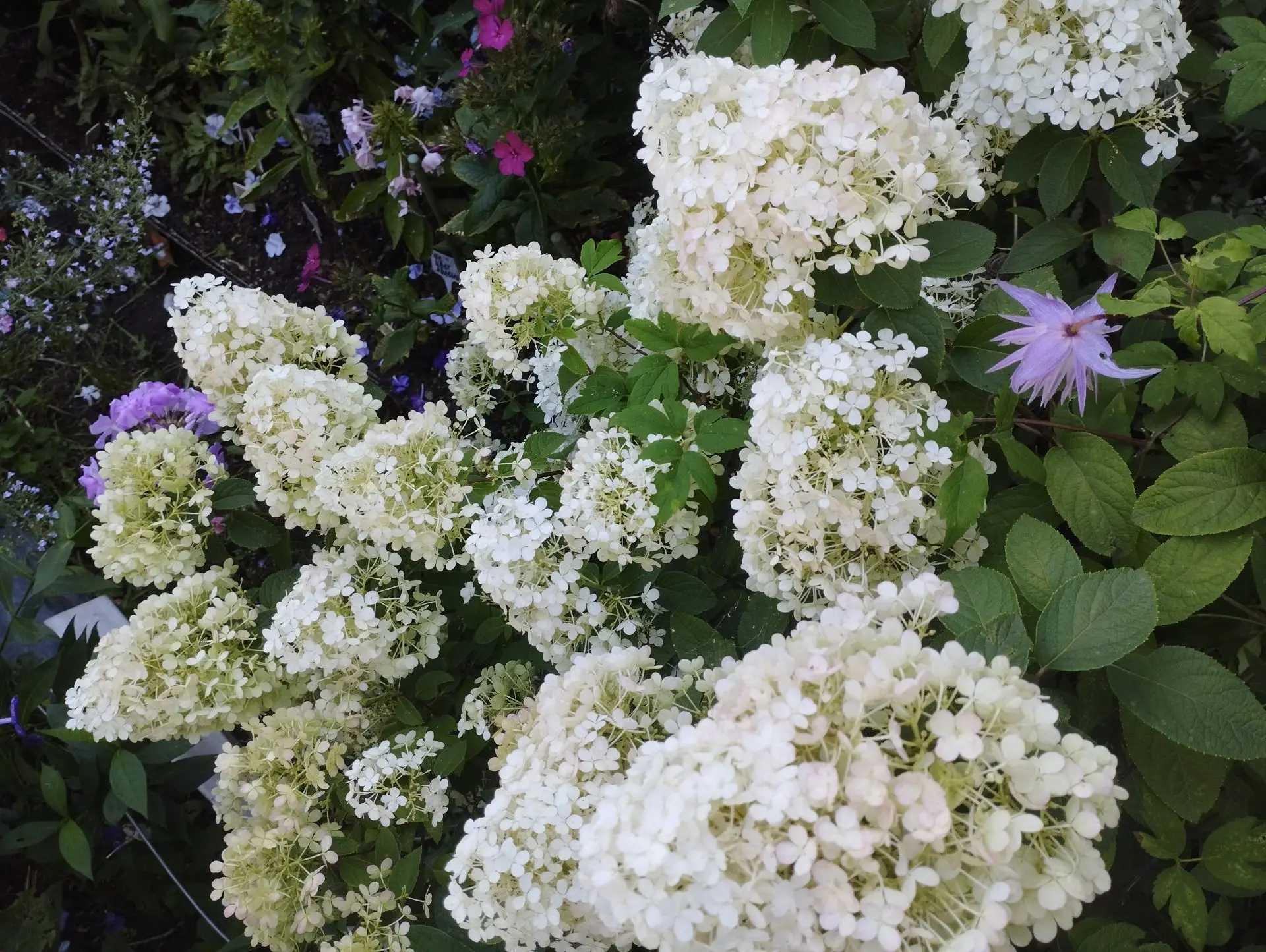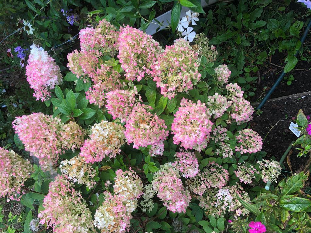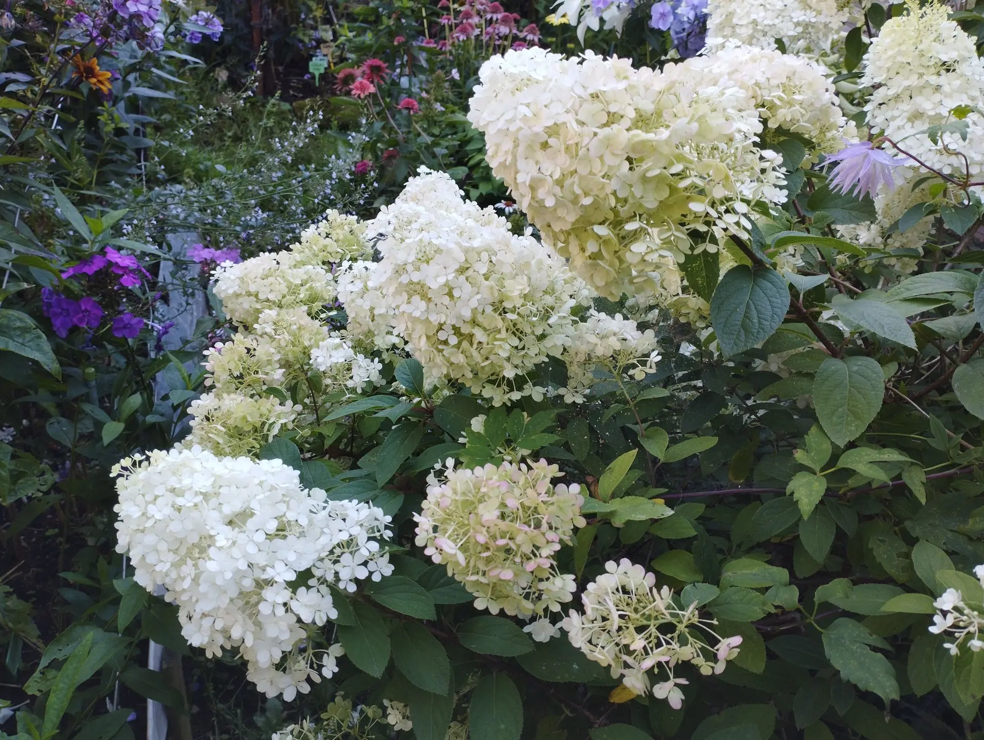 Гортензии Bobo, Grear star; аконит Napellus; эхинацеи Raspberry and cream, Double white, Double pink в саду Гриндачи в 2023 году.