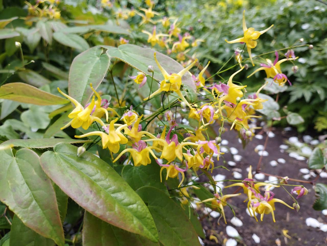 h-20 см, цветы ярко-желтые с ярко-розовым прицветником