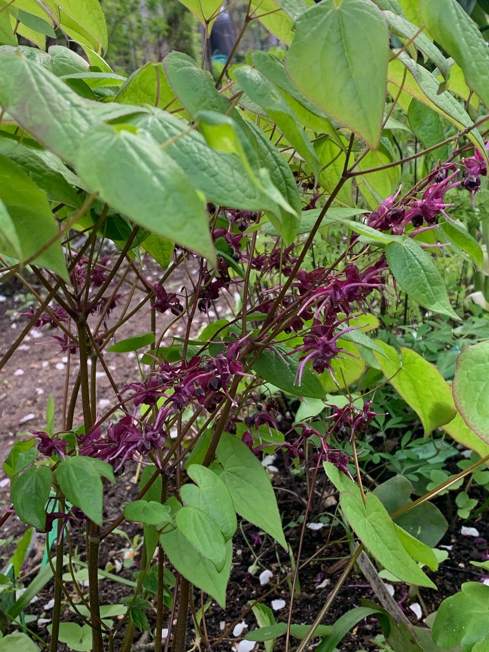 Высота 70см, цветы ярко-розовые, листья с бордовой окантовкой, цветение май-июнь
