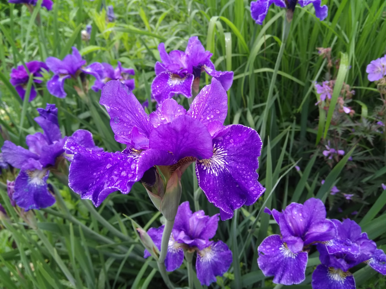 Высота 80см, цветы сине-фиолетовые, махровые (диаметр 12см)