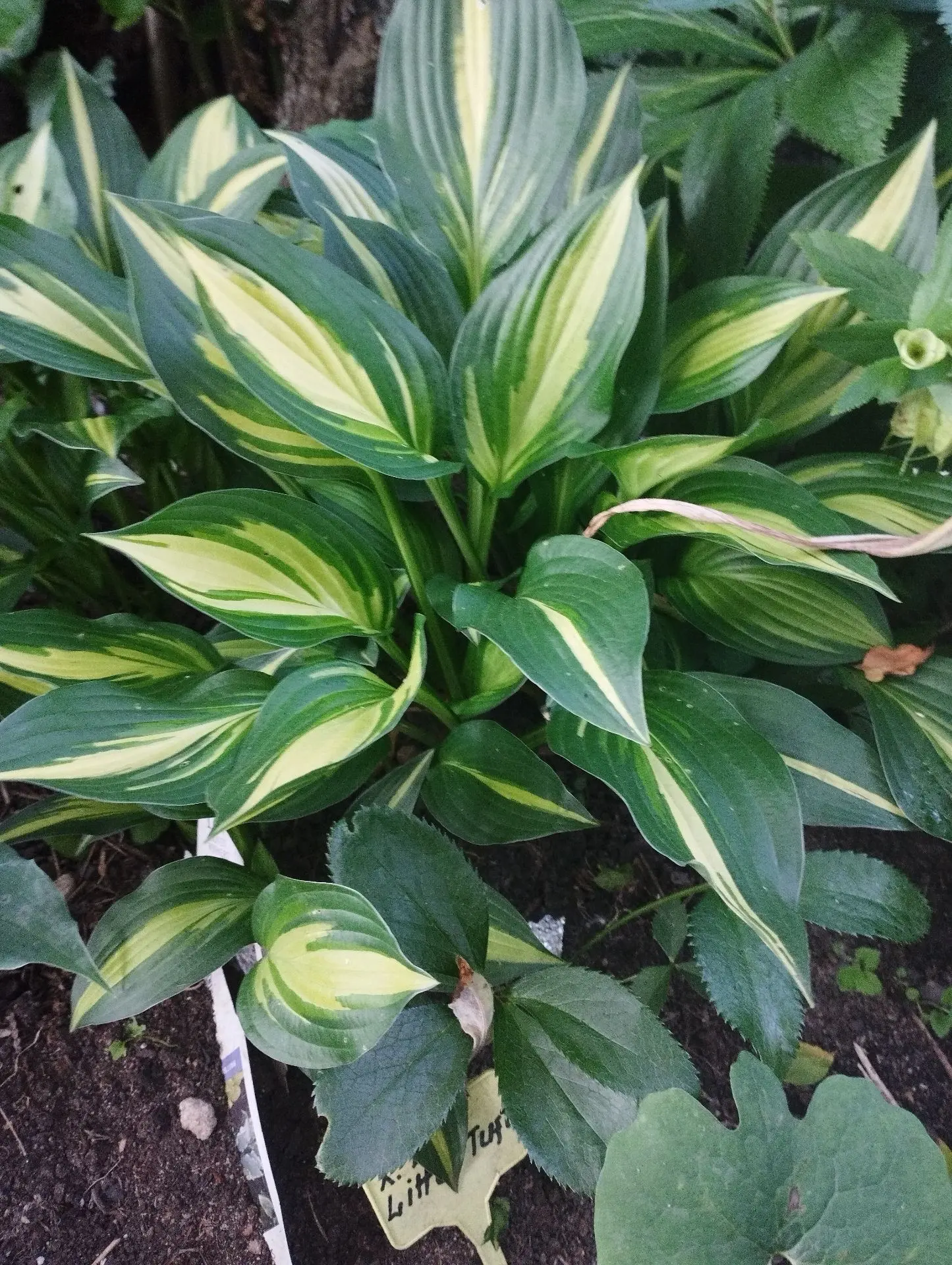 S, лист овальный, удлиненный, зеленый с неравномерными желтыми полосками....