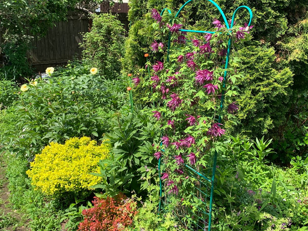 Вовсю цветет Княжик Purple Surprise и Пион Пион Lemon Shiffon.