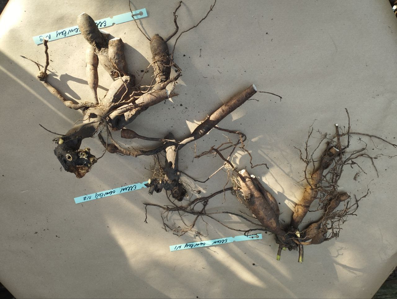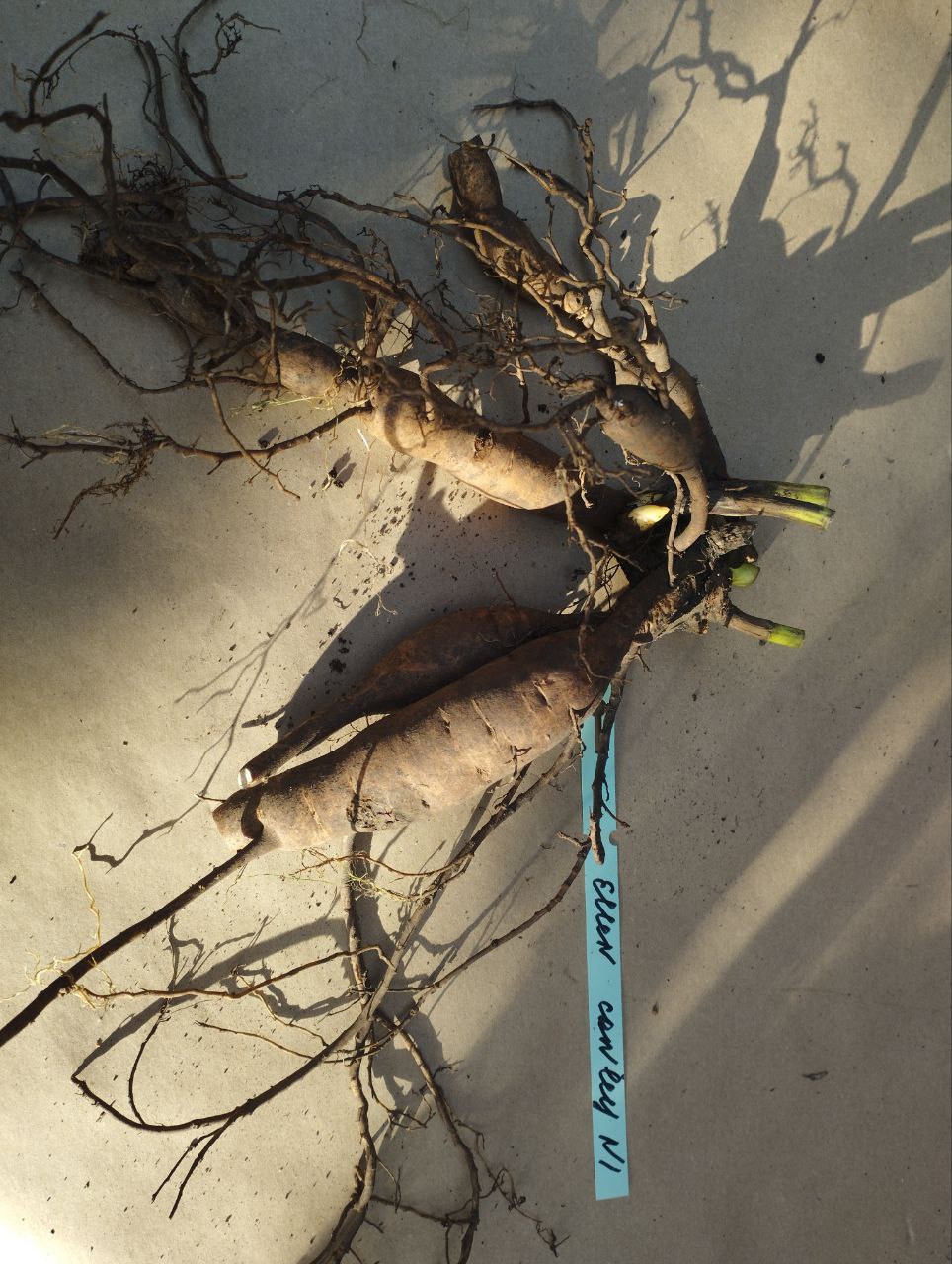 Стебли толстые, прочные. Листья мелкие, с узкими долями без блеска.