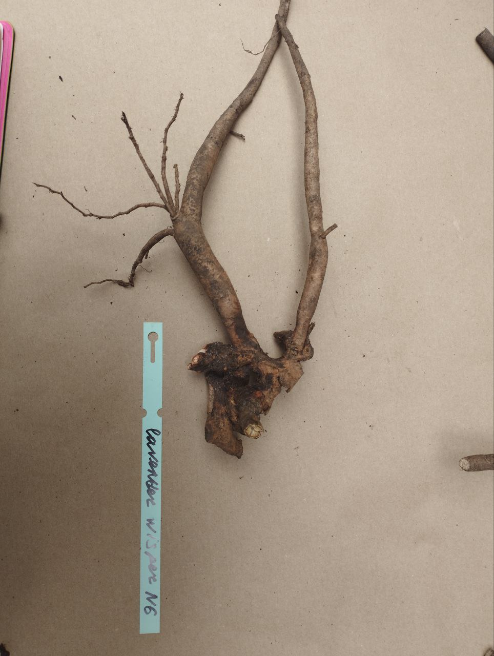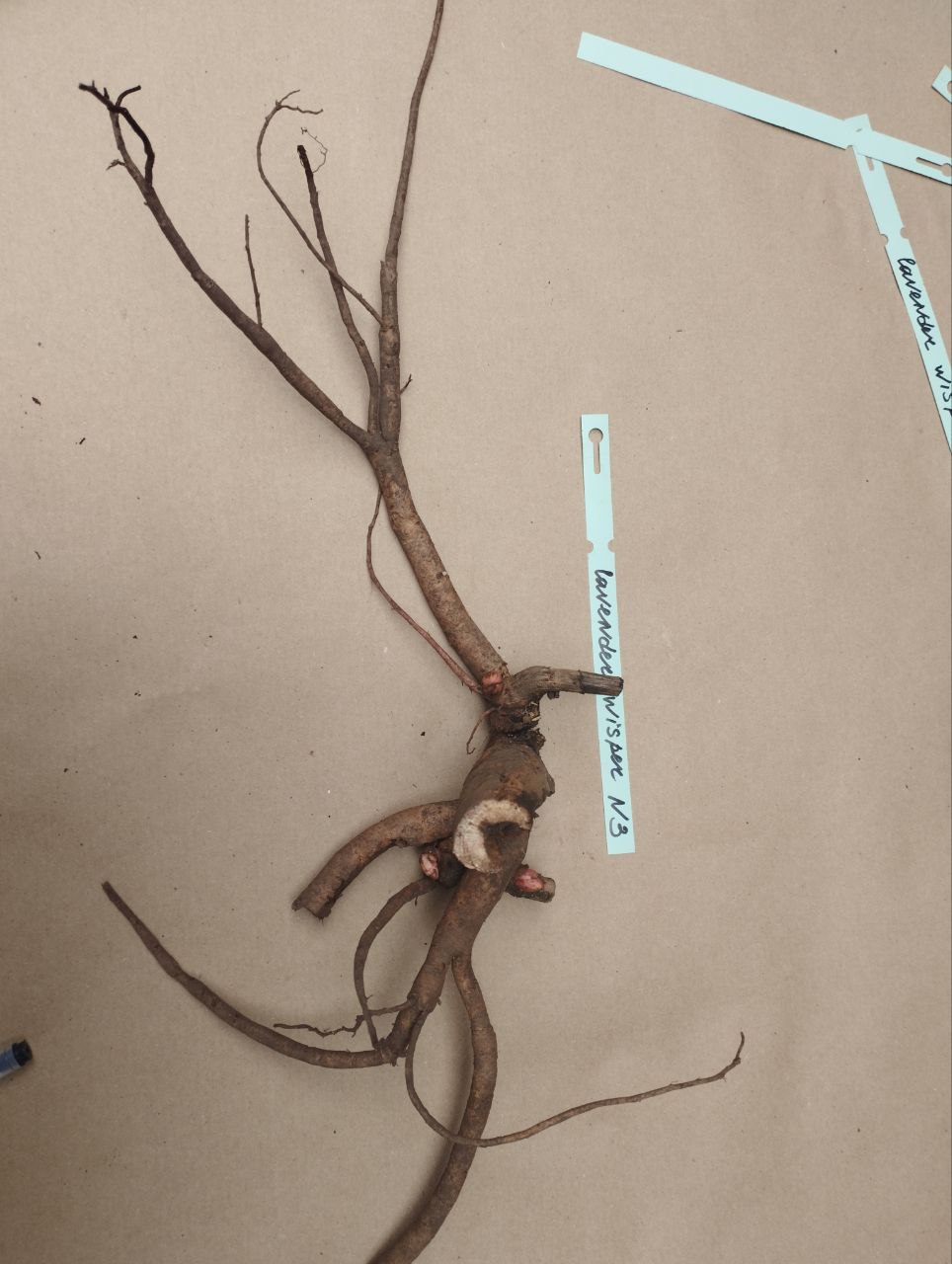 Чашевидный цветок сложен из двух рядов нежных лепестков цвета мягкой лаванды. Лепестки слегка гофрированные. Рыльца красные.