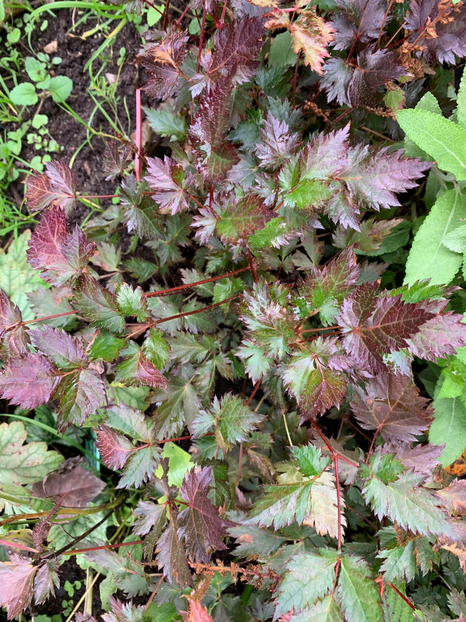 Высота с цветоносом 45 см, высота листвы 25 см. Цветы насыщенного розового цвета. Цветет в июле-августе. В начале лета листья прокрашиваются в бордово-коричневый цвет . Во время цветения цвет листьев становится менее насыщенным. К осени проявляются бордово-красно-зеленые оттенки.