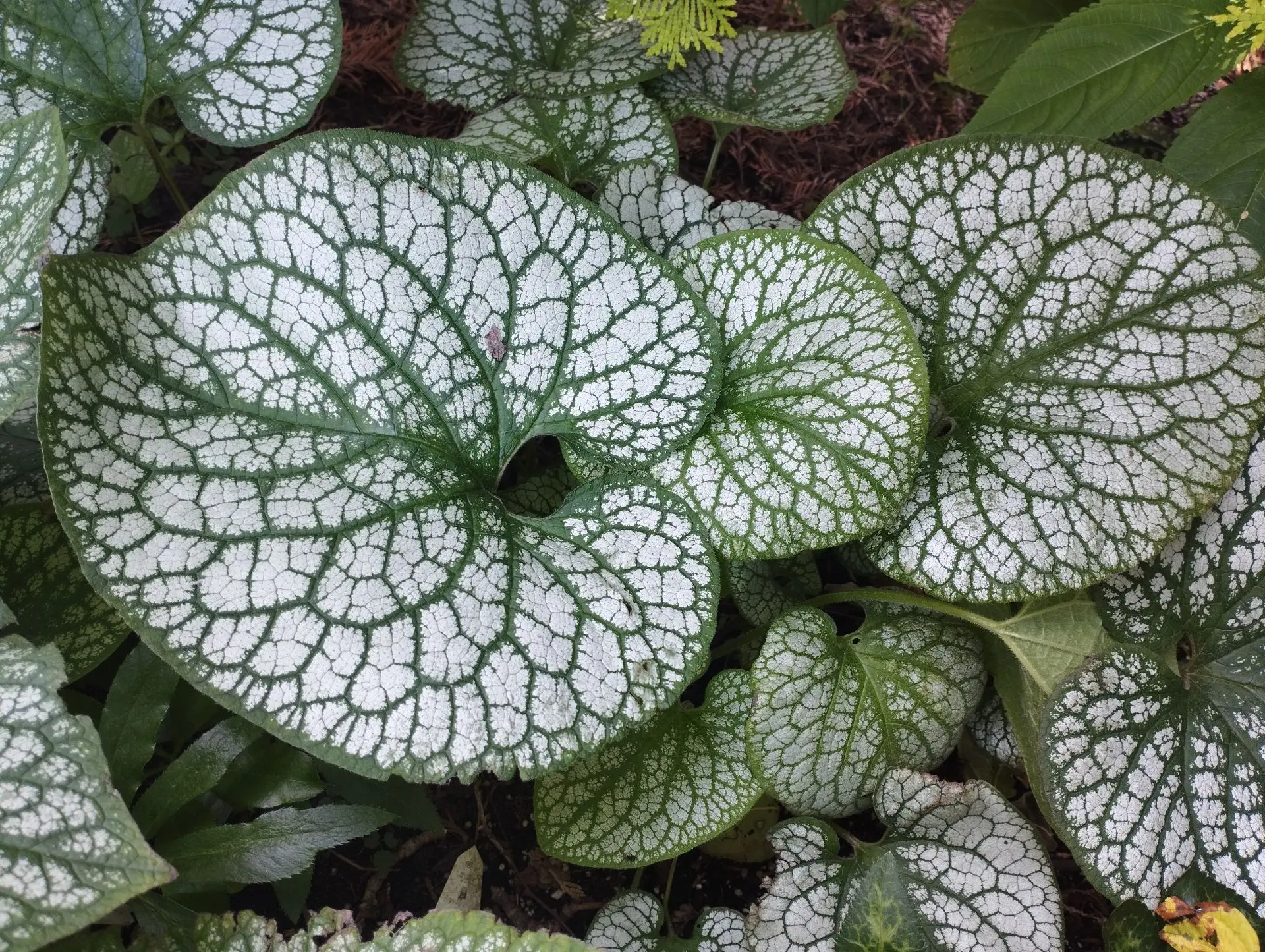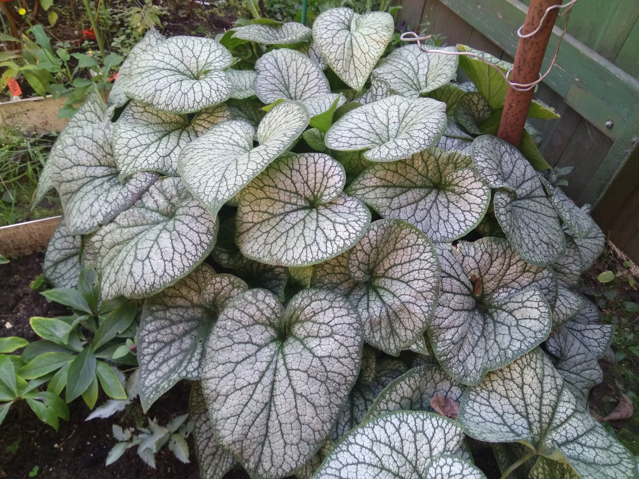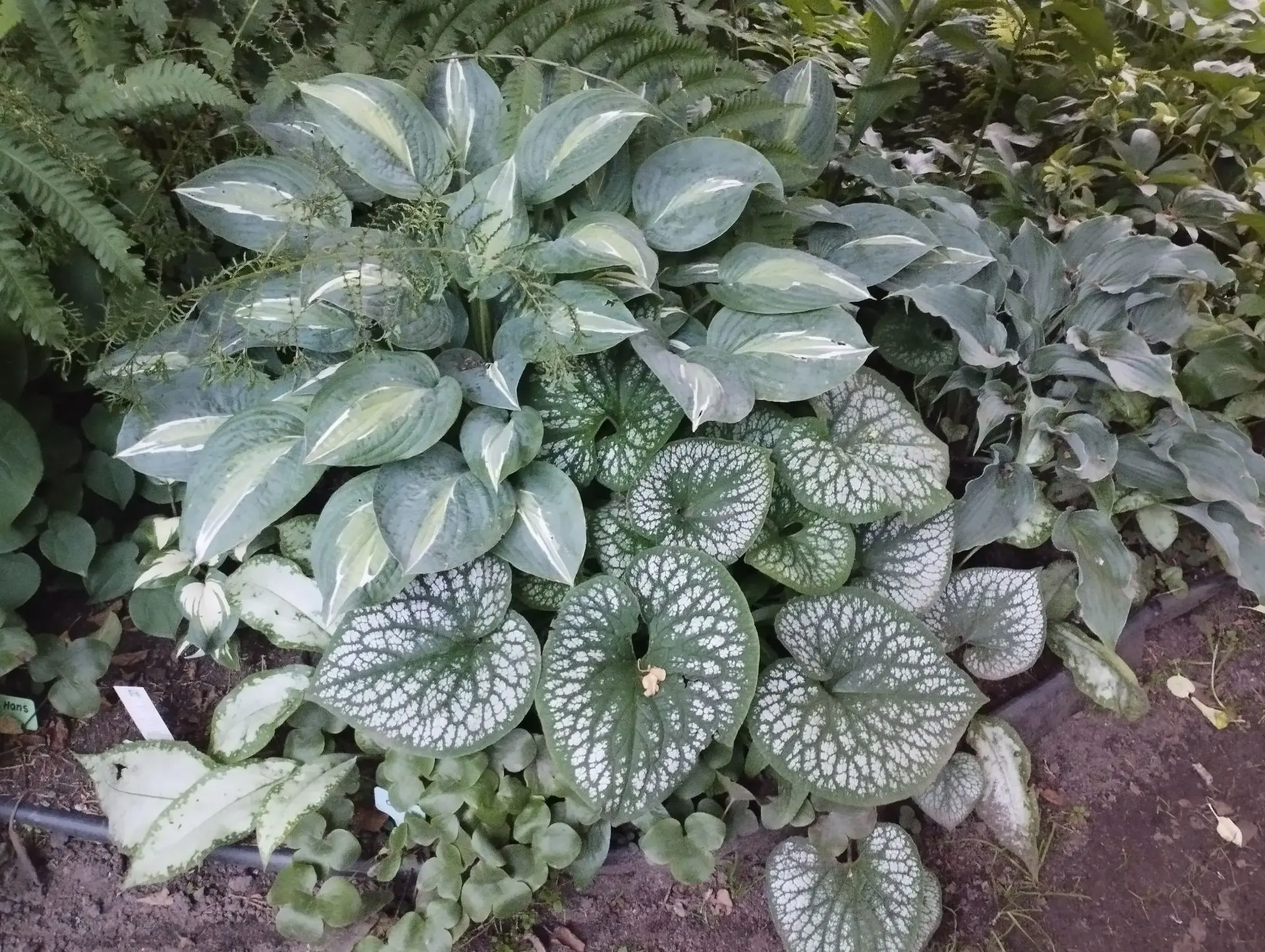 - Композиция растений для тени (хоста Erotica, брунера Jack frost,