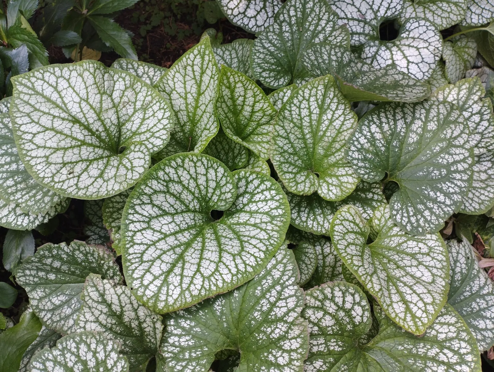 Высота 30см, цветы синие, листья серебристые с зелеными прожилками, крупнолистная, листья декоративные до снега, цветет апрель-май.